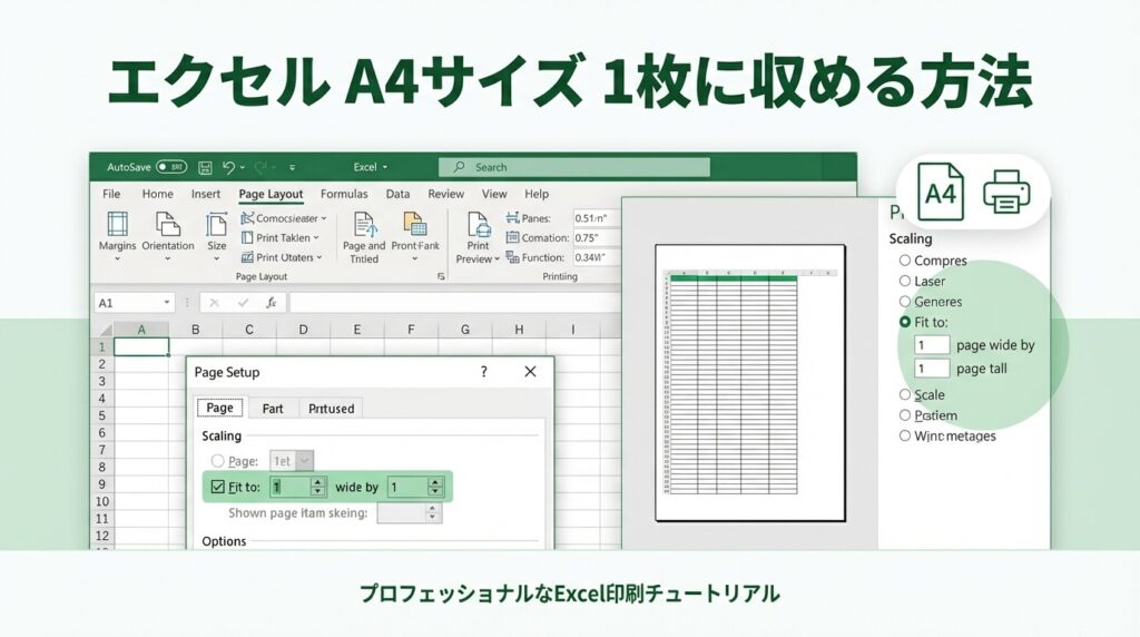 この記事では、A4サイズぴったりに印刷するための基本(ページレイアウト、印刷範囲の設定、1ページに収めるコツ)から、改ページプレビューや拡大縮小印刷の使い分け、すべての列を1ページに収めたいときの考え方、最後に白紙が印刷される原因まで、つまずきやすい所をまとめていきます。